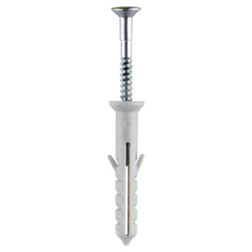 De OK Slagplug nylon Ø 6x40mm met schroef is geschikt voor toepassing op verschillende soorten materialen zoals beton, wandverbinding en metaal. Nagelpluggen zijn zeer geschikt voor het monteren van houten regelwerk (zoals plinten). De werkwijze is anders dan bij een gewone plug en daarom is deze plug ook wel bekend als spijkerplug of nagelplug. Je slaat de plug namelijk met een hamer in het boorgat. Gebruik voor het boren van het gat een boor met een doorsnede van 6mm. De plug is 40mm lang. Bijpassende schroeven zijn 45mm lang en hebben een doorsnede van Ø 3,7 mm. Een verpakking bevat 65 slagpluggen.