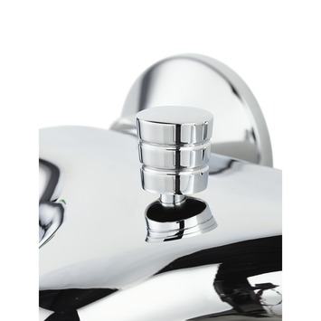 De thermostaatknop van de kraan is uitgerust met een temperatuurbeveiligingsknop die de watertemperatuur begrenst. Ideaal wanneer je bijvoorbeeld jongere kinderen hebt. Wil je genieten van een extra warme douche, dan druk je deze knop in en draait de kraan verder open.