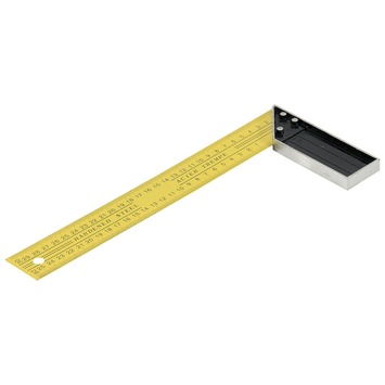 De OK winkelhaak 300 mm wordt gebruikt om rechte hoeken uit te zetten of te controleren op haaksheid. Deze 300 millimeter lange winkelhaak heeft de mogelijkheid om zowel aan de binnen- als aan de buitenzijde te worden afgelezen en afgetekend.