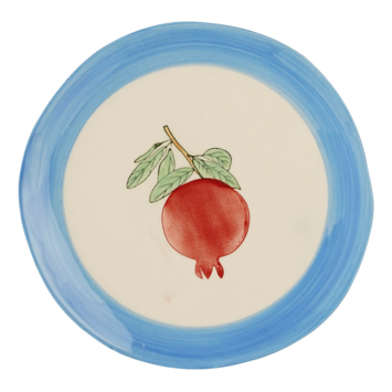 Voeg wat kleur toe aan je eettafel met dit bord. De blauwe rand brengt een frisse sfeer en in het midden zie je fruit afgebeeld. Gemaakt van stevig steengoed, is dit bord niet alleen mooi, maar ook praktisch. Hij is namelijk bestend tegen de vaatwasser en de magnetron. Fijn voor dagelijks gebruik! De hoogte van het bord is 2 cm en de diameter is 20 cm.