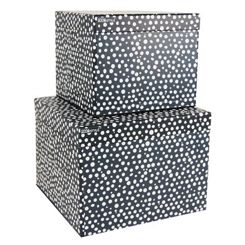 Opberger Mees zwart/wit set van 2 is een handige decoratieve opberger. De opbergers hebben een losse deksel. De sfeervolle zwart/witte print geeft jouw interieur een gezellige uitstraling. De set bestaat uit een opberger van 18 centimeter hoog, 24 centimeter breed en 24 centimeter diep en een opberger van 17 centimeter hoog, 20 centimeter breed en 20 centimeter diep.
