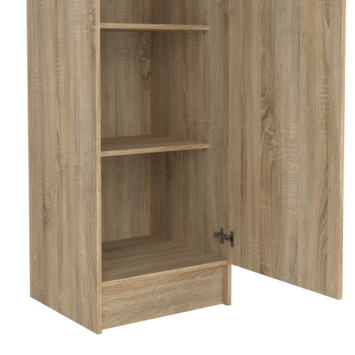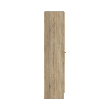 Achter de deur vind je vier legplanken en een roede. Zo kun je kleding, schoenen, beddengoed of accessoires netjes opbergen. Met een hoogte van 200 cm en een breedte van 49,2 cm biedt de kast verrassend veel opbergruimte zonder dat hij veel plaats inneemt.