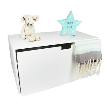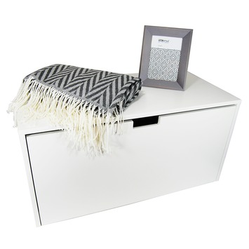 Opbergkist Jazz MDF wit 40x80x40 cm is een handige opbergkist met schuiflade. Aangezien het ook gelijk als bankje gebruikt kan worden, is dit een ideale opberger in de gang, kinderkamer of waar dan ook in huis. De opbergkist is gemaakt van wit MDF en is dus makkelijk in gebruik. De opbergkist Jazz MDF wit 40x80x40 cm is 40 centimeter hoog, 80 centimeter breed en 40 centimeter diep.