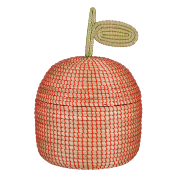 Het maakt niet uit wat je opbergt in deze rode opbergmand, je weet zeker dat het goed en veilig is bewaard. De mand is namelijk voorzien van een deksel. En door de vrolijke vormgeving brengt het dan ook extra sfeer bij de plek waar je de mand plaatst. Hij is dus naast functioneel en praktisch ook erg smaakvol. De mand is vervaardigd van zeegras, heeft als afmeting H28 x ø30 cm en past in elke woonstijl.