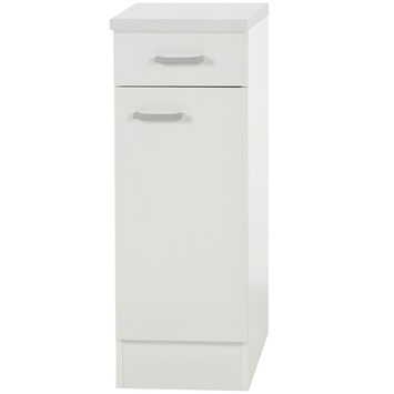 Deze kast biedt praktische opbergruimte met één deur en één lade. Ideaal voor het organiserend van keukengerei en ingredienten.
