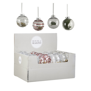 Deze kerstboomdecoratie maken de sfeer in jouw kerstboom. De transparante ballen zijn gevuld met een klein dennentakje met wat glitter of sneeuw. De ballen zijn gemaakt van kunststof en zijn onbreekbaar, dat is handig als je huisdieren of kinderen hebt.