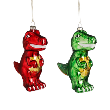 Als je kleintje een fan is van dinosaurussen dan is dit dinosaurus ornament zeker een aanrader voor in je kerstboom. Dit dinosaurus ornament kan ook worden gebruikt als versiering bij het raam van de kinderkamer. Het is gemaakt van glas en heeft de afmetingen L10 x B4,5 x H12 cm. Dit artikel is verkrijgbaar in rood en groen en voorzien van een touwtje om op te hangen. Ook leuk om met elkaar te combineren!