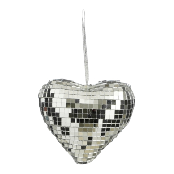 Voeg een feestelijke touch toe aan je kerstboom met dit disco kerstornament. Hij heeft de vorm van een hart en is versierd met zilverkleurig spiegelglas. Door de afmetingen L11 x B10 x H5 cm past hij perfect in elke kerstboom. Laat het kerstfeest maar beginnen!