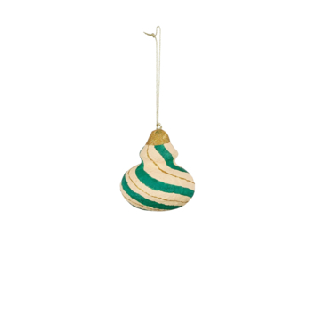 Dit hangornament is een ware blikvanger voor in je kerstboom. Het hangornament heeft namelijk een prachtige handgemaakte katoen mache look. Het hangornament is gemaakt van gerecycled katoen, overgebleven textiel uit de mode-industrie dat wordt gebruikt om onder andere papierpulp of nieuwe producten van te maken. Dit ornament is sierlijk met de hand beschilderd in een trendy donkergroene kleur. Een mooie en betere keuze! Daarnaast is de kersthanger voorzien van een touwtje om op te hangen en meet H8 xø7 cm. Ook stijlvol om te combineren met meerdere hangornamenten van gerecycled katoen voor stijlvol geheel!