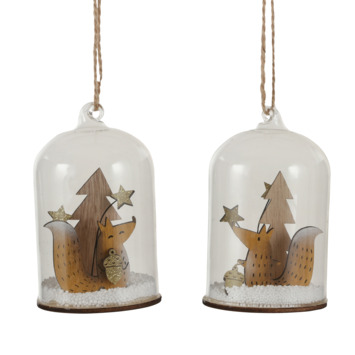In de kleine glazen stolp zit een klein tafereeltje gemaakt van hout en een laagje sneeuw voor een feestelijk effect. De kleine stolpjes zijn een mooie toevoeging aan de jouw kerstboom, maar je kan ze ook neerzetten als sfeervolle kerstdecoratie.