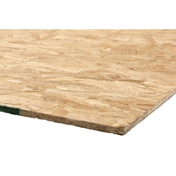 De OSB-plaat heeft een dikte van 9 mm en een afmeting van 244 x 122 cm. OSB bestaat uit verschillende lagen houtfillers van voornamelijk grenen- en vurenhout en deze plaat is watervast verlijmd. Hierdoor is de plaat gemakkelijk te zagen, boren, schaven en schuren. OSB-platen zijn geschikt voor binnenbetimmeringen zoals wand-, vloer- en dakconstructies.