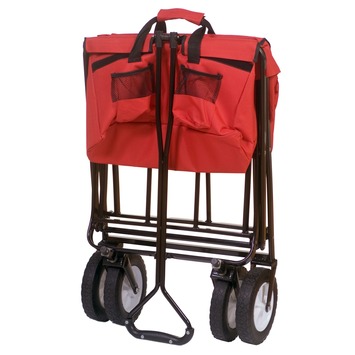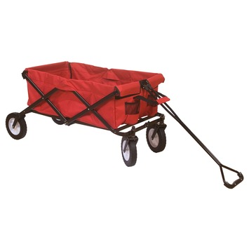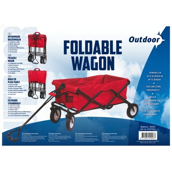 Solide bolderwagen met rood polyester doek en stalen constructie. De rubberen zwenkwielen maakt deze bolderwagen zeer wendbaar. Doordat deze bolderwagen op te vouwen is neemt hij weinig ruimte in en is hij dus ideaal om mee te nemen in de kofferbak. Opgevouwen is de afmeting 75x51x21 cm en opengeklapt (lxbxh) 90x51x57 cm. Deze bolderwagen wordt compleet geleverd met een opberghoes. Het max. te dragen gewicht is 68 kg. Ideaal voor o.a. op de camping.