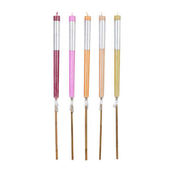 De gekleurde tuinkaarsen geven een gezellige ambiance door het sfeervolle licht. Ze zijn verkrijgbaar in de kleuren fuchsia, oranje, limoen, roze en perzik. De kaarsen zijn gemaakt van gekleurde paraffine en zijn een originele, gezellige blikvanger. Een gezellige, stijlvolle toevoeging aan de tuin! De afmetingen zijn H70 xø3,5 cm.