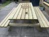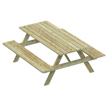Op zoek naar een tuintafel voor gezellige dinertjes in de zomer? Deze houten picknick tafel is een stevige tafel, die plaats biedt aan 4 personen. Het hout van de picknicktafel is geïmpregneerd, zodat het beschermd is tegen diverse weersinvloeden. Om het hout nog langer mooi te houden, adviseren we onderstaande onderhoudstips te volgen. Ook is het hout overschilderbaar in elke gewenste kleur. Zo is de tafel naar eigen wens aan te passen op de rest van de tuininrichting en krijgt het hout een extra beschermende laag.