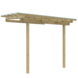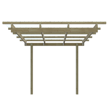 De aanbouw overkapping is ca. 300 cm breed en ca. 250 cm diep. De nokhoogte is 270 cm met een aflopend dak. Deze overkapping kan bevestigd worden tegen de zijkant van je woning of een schuurtje. Deze terrasoverkapping is ideaal voor een kleine veranda om tegen je woning te plaatsen, maar ook zeer geschikt om bijvoorbeeld fietsen en scooters onder te plaatsen. De aanbouw overkapping is gemaakt van geïmpregneerde grenen palen en balken. De overkapping heeft 3 staanders met een kopmaat van 9x9 cm een . De overkapping is inclusief transparante dakbedekking. Het is uiteraard mogelijk om zelf een andere typedakbedekking erop te maken.Bevestigen van de overkapping