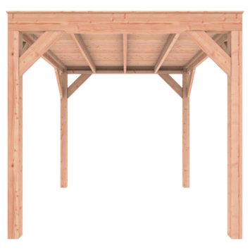 Deze modern vormgegeven overkapping biedt een perfecte balans tussen uitstraling en functionaliteit.De totale afmetingen zijn 245 cm hoog, 255 cm breed en 255 cm diep en heeft een doorloophoogte van 224 cm.Zoek je een overdekte plek voor ontspanning in de tuin? Deze sfeervolle overkapping is een aanwinst voor iedere tuin.Klaar voor een groene toekomst:Dit modern vormgegeven tuinverblijf is speciaal ontworpen om zonnepanelen of een sedum dak te kunnen ondersteunen, Hierdoor is dit verblijf een duurzame en milieuvriendelijke aanvulling op uw tuin is.Zelf aan de slagDankzij de duidelijke opbouwomschrijving, meegeleverde bevestigingsmaterialen en op maat gezaagde onderdelen, is de installatie van dit tuinhuis een haalbare klus voor iedere gemiddelde doe-het-zelver. Dak bekleding:Wij raden aan om deze Douglas overkapping te voorzien van een EPDM Dak bekleding voor een lekvrij dak (Let op: los bij te bestellen).Onderhoud:Bij het kopen van een overkapping is onderhoud een aandachtspunt… Met Douglas hout heb je het goed voor elkaar, Douglas is namelijk van zichzelf al een sterke houtsoort. Het gaat zonder extra behandeling eenvoudig 10 tot 15 jaar mee. Om de maximale levensduur te verlengen kun je gebruik maken van speciale Douglas beits of Douglas olie en elke 2 jaar opnieuw beitsen of oliën.