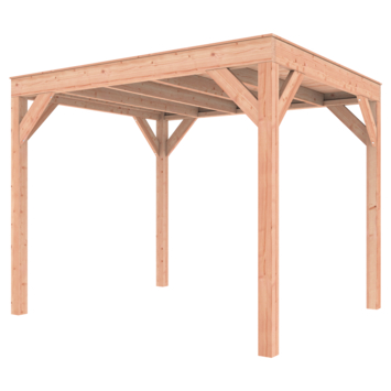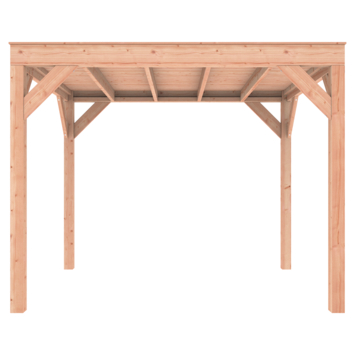 Deze modern vormgegeven overkapping biedt een perfecte balans tussen uitstraling en functionaliteit.De totale afmetingen zijn 245 cm hoog, 305 cm breed en 255 cm diep en heeft een doorloophoogte van 224 cm.Zoek je een overdekte plek voor ontspanning in de tuin? Deze sfeervolle overkapping is een aanwinst voor iedere tuin.Klaar voor een groene toekomst:Dit modern vormgegeven tuinverblijf is speciaal ontworpen om zonnepanelen of een sedum dak te kunnen ondersteunen, Hierdoor is dit verblijf een duurzame en milieuvriendelijke aanvulling op uw tuin is.Zelf aan de slagDankzij de duidelijke opbouwomschrijving, meegeleverde bevestigingsmaterialen en op maat gezaagde onderdelen, is de installatie van dit tuinhuis een haalbare klus voor iedere gemiddelde doe-het-zelver. Dak bekleding:Wij raden aan om deze Douglas overkapping te voorzien van een EPDM Dak bekleding voor een lekvrij dak (Let op: los bij te bestellen).Onderhoud:Bij het kopen van een overkapping is onderhoud een aandachtspunt… Met Douglas hout heb je het goed voor elkaar, Douglas is namelijk van zichzelf al een sterke houtsoort. Het gaat zonder extra behandeling eenvoudig 10 tot 15 jaar mee. Om de maximale levensduur te verlengen kun je gebruik maken van speciale Douglas beits of Douglas olie en elke 2 jaar opnieuw beitsen of oliën.