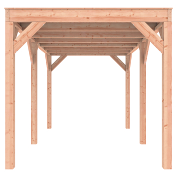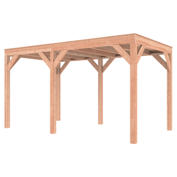 Deze modern vormgegeven overkapping biedt een perfecte balans tussen uitstraling en functionaliteit.De totale afmetingen zijn 245 cm hoog, 445 cm breed en 255 cm diep en heeft een doorloophoogte van 224 cm.Zoek je een overdekte plek voor ontspanning in de tuin? Deze sfeervolle overkapping is een aanwinst voor iedere tuin.Klaar voor een groene toekomst:Dit modern vormgegeven tuinverblijf is speciaal ontworpen om zonnepanelen of een sedum dak te kunnen ondersteunen, Hierdoor is dit verblijf een duurzame en milieuvriendelijke aanvulling op uw tuin is.Zelf aan de slagDankzij de duidelijke opbouwomschrijving, meegeleverde bevestigingsmaterialen en op maat gezaagde onderdelen, is de installatie van dit tuinhuis een haalbare klus voor iedere gemiddelde doe-het-zelver. Dak bekleding:Wij raden aan om deze Douglas overkapping te voorzien van een EPDM Dak bekleding voor een lekvrij dak (Let op: los bij te bestellen).Onderhoud:Bij het kopen van een overkapping is onderhoud een aandachtspunt… Met Douglas hout heb je het goed voor elkaar, Douglas is namelijk van zichzelf al een sterke houtsoort. Het gaat zonder extra behandeling eenvoudig 10 tot 15 jaar mee. Om de maximale levensduur te verlengen kun je gebruik maken van speciale Douglas beits of Douglas olie en elke 2 jaar opnieuw beitsen of oliën.