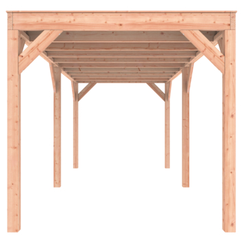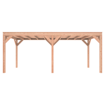 Deze modern vormgegeven overkapping biedt een perfecte balans tussen uitstraling en functionaliteit.De totale afmetingen zijn 245 cm hoog, 595 cm breed en 255 cm diep en heeft een doorloophoogte van 224 cm.Zoek je een overdekte plek voor ontspanning in de tuin? Deze sfeervolle overkapping is een aanwinst voor iedere tuin.Klaar voor een groene toekomst:Dit modern vormgegeven tuinverblijf is speciaal ontworpen om zonnepanelen of een sedum dak te kunnen ondersteunen, Hierdoor is dit verblijf een duurzame en milieuvriendelijke aanvulling op uw tuin is.Zelf aan de slagDankzij de duidelijke opbouwomschrijving, meegeleverde bevestigingsmaterialen en op maat gezaagde onderdelen, is de installatie van dit tuinhuis een haalbare klus voor iedere gemiddelde doe-het-zelver. Dak bekleding:Wij raden aan om deze Douglas overkapping te voorzien van een EPDM Dak bekleding voor een lekvrij dak (Let op: los bij te bestellen).Onderhoud:Bij het kopen van een overkapping is onderhoud een aandachtspunt… Met Douglas hout heb je het goed voor elkaar, Douglas is namelijk van zichzelf al een sterke houtsoort. Het gaat zonder extra behandeling eenvoudig 10 tot 15 jaar mee. Om de maximale levensduur te verlengen kun je gebruik maken van speciale Douglas beits of Douglas olie en elke 2 jaar opnieuw beitsen of oliën.