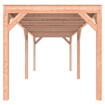Deze modern vormgegeven overkapping biedt een perfecte balans tussen uitstraling en functionaliteit.De totale afmetingen zijn 245 cm hoog, 695 cm breed en 255 cm diep en heeft een doorloophoogte van 224 cm.Zoek je een overdekte plek voor ontspanning in de tuin? Deze sfeervolle overkapping is een aanwinst voor iedere tuin.Klaar voor een groene toekomst:Dit modern vormgegeven tuinverblijf is speciaal ontworpen om zonnepanelen of een sedum dak te kunnen ondersteunen, Hierdoor is dit verblijf een duurzame en milieuvriendelijke aanvulling op uw tuin is.Zelf aan de slagDankzij de duidelijke opbouwomschrijving, meegeleverde bevestigingsmaterialen en op maat gezaagde onderdelen, is de installatie van dit tuinhuis een haalbare klus voor iedere gemiddelde doe-het-zelver. Dak bekleding:Wij raden aan om deze Douglas overkapping te voorzien van een EPDM Dak bekleding voor een lekvrij dak (Let op: los bij te bestellen).Onderhoud:Bij het kopen van een overkapping is onderhoud een aandachtspunt… Met Douglas hout heb je het goed voor elkaar, Douglas is namelijk van zichzelf al een sterke houtsoort. Het gaat zonder extra behandeling eenvoudig 10 tot 15 jaar mee. Om de maximale levensduur te verlengen kun je gebruik maken van speciale Douglas beits of Douglas olie en elke 2 jaar opnieuw beitsen of oliën.