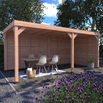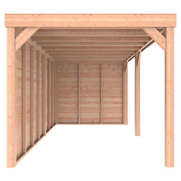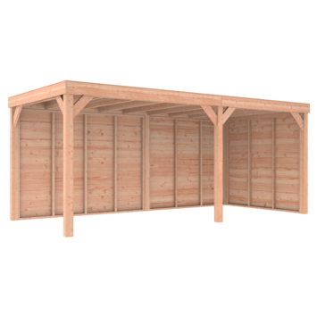 Bij KARWEI hebben we verschillende Douglas overkappingen. Deze Overkapping Douglas Hout Blank met Achterwand en Zijwand 270x582 cm is daar slechts één van. Je kunt deze overkapping kopen in verschillende afmetingen en je hebt de keuze uit wel of geen achterwand, zijwand of 2 zijwanden. Je kunt er dus alle kanten mee op! Deze houten overkapping is uitgevoerd in blank hout, maar we hebben hem ook met zwarte wanden.