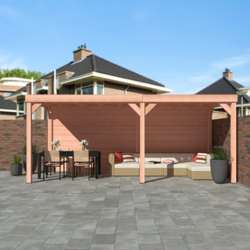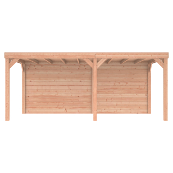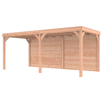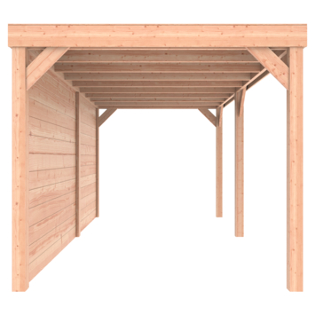 Bij KARWEI hebben we verschillende Douglas overkappingen. Deze Overkapping Douglas Hout Blank met Blokhutprofiel Achterwand 270x582 cm is daar slechts één van. Je kunt deze overkapping kopen in verschillende afmetingen en je hebt de keuze uit wel of geen achterwand, zijwand of 2 zijwanden. Je kunt er dus alle kanten mee op!
