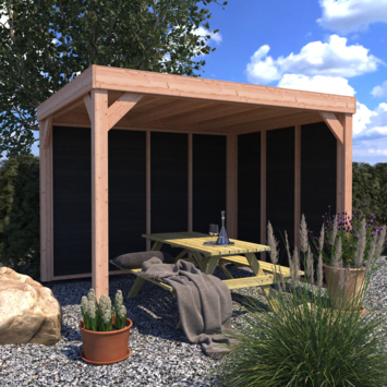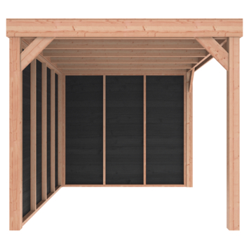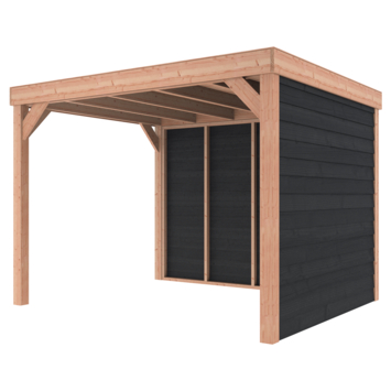 Bij KARWEI hebben we verschillende Douglas overkappingen. Deze Overkapping Douglas Hout Zwart met Achterwand en Zijwand 270x330 cm is daar slechts één van. Je kunt deze overkapping kopen in verschillende afmetingen en je hebt de keuze uit wel of geen achterwand, zijwand of 2 zijwanden. Je kunt er dus alle kanten mee op! Deze houten overkapping is uitgevoerd in zwart hout, maar we hebben hem ook met wanden van blank hout.