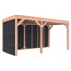 Deze modern vormgegeven overkapping biedt een perfecte balans tussen uitstraling en functionaliteit.De totale afmetingen zijn 245 cm hoog, 495 cm breed en 255 cm diep en heeft een doorloophoogte van 224 cm.Zoek je een overdekte plek voor ontspanning in de tuin? Deze sfeervolle overkapping is een aanwinst voor iedere tuin.Natuurlijke uitstraling, degelijke kwaliteit.De wanden zijn bekleed met Zwart Zweeds rabat en de constructie is gemaakt van onbehandeld Douglas met stevige staanders van 12x12cm.De keuze voor onbehandeld Douglas hout biedt een authentieke uitstraling en staat ook garant voor een lange levensduur.Klaar voor een groene toekomst:Dit modern vormgegeven tuinverblijf is speciaal ontworpen om zonnepanelen of een sedum dak te kunnen ondersteunen, Hierdoor is dit verblijf een duurzame en milieuvriendelijke aanvulling op uw tuin is.Zelf aan de slagDankzij de duidelijke opbouwomschrijving, meegeleverde bevestigingsmaterialen en op maat gezaagde onderdelen, is de installatie van dit tuinhuis een haalbare klus voor iedere gemiddelde doe-het-zelver. Dak bekleding:Wij raden aan om deze Douglas overkapping te voorzien van een EPDM Dak bekleding voor een lekvrij dak (Let op: los bij te bestellen).Onderhoud:Bij het kopen van een overkapping is onderhoud een aandachtspunt… Met Douglas hout heb je het goed voor elkaar, Douglas is namelijk van zichzelf al een sterke houtsoort. Het gaat zonder extra behandeling eenvoudig 10 tot 15 jaar mee. Om de maximale levensduur te verlengen kun je gebruik maken van speciale Douglas beits of Douglas olie en elke 2 jaar opnieuw beitsen of oliën.