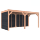 Deze modern vormgegeven overkapping biedt een perfecte balans tussen uitstraling en functionaliteit.De totale afmetingen zijn 245 cm hoog, 545 cm breed en 255 cm diep en heeft een doorloophoogte van 224 cm.Zoek je een overdekte plek voor ontspanning in de tuin? Deze sfeervolle overkapping is een aanwinst voor iedere tuin.Natuurlijke uitstraling, degelijke kwaliteit.De wanden zijn bekleed met Zwart Zweeds rabat en de constructie is gemaakt van onbehandeld Douglas met stevige staanders van 12x12cm.De keuze voor onbehandeld Douglas hout biedt een authentieke uitstraling en staat ook garant voor een lange levensduur.Klaar voor een groene toekomst:Dit modern vormgegeven tuinverblijf is speciaal ontworpen om zonnepanelen of een sedum dak te kunnen ondersteunen, Hierdoor is dit verblijf een duurzame en milieuvriendelijke aanvulling op uw tuin is.Zelf aan de slagDankzij de duidelijke opbouwomschrijving, meegeleverde bevestigingsmaterialen en op maat gezaagde onderdelen, is de installatie van dit tuinhuis een haalbare klus voor iedere gemiddelde doe-het-zelver. Dak bekleding:Wij raden aan om deze Douglas overkapping te voorzien van een EPDM Dak bekleding voor een lekvrij dak (Let op: los bij te bestellen).Onderhoud:Bij het kopen van een overkapping is onderhoud een aandachtspunt… Met Douglas hout heb je het goed voor elkaar, Douglas is namelijk van zichzelf al een sterke houtsoort. Het gaat zonder extra behandeling eenvoudig 10 tot 15 jaar mee. Om de maximale levensduur te verlengen kun je gebruik maken van speciale Douglas beits of Douglas olie en elke 2 jaar opnieuw beitsen of oliën.