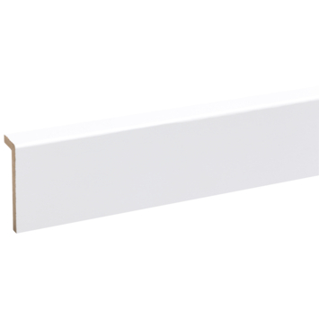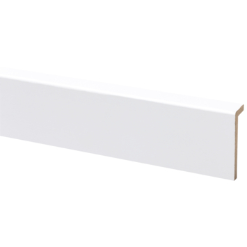 Deze overzetplint is ideaal voor renovatie. De plint kan namelijk gemakkelijk over bestaande plinten heen gezet worden. De plint is voorzien van schildersfolie en is dus overschilderbaar. De plint heeft een hoogte van 6,5 cm en een dikte van 2 cm.