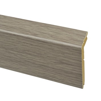 Deze overzetplint steen eiken nr. 395 240 cm is gemaakt in de kleur die past bij het bijbehorende laminaat Cando V-groef steen eiken (artikelnr. 460179). De plinten zijn eenvoudig over bestaande plinten te bevestigen met behulp van speciale plintclips (460002). Bijpassende binnen- en buitenhoeken, eind/koppelstuk of rozetten met accessoire nr. KL 04 apart verkrijgbaar.