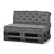 Met de palletkussens antraciet set maak je van een pallet heel gemakkelijk een comfortabele zitplaats. De antracietkleurige kussens bestaan uit een zit- en een ruggedeelte. Zowel het binnen- als het buitenmateriaal bestaat uit 100% katoen. Omdat de kussen niet vocht- en waterbestendig is, adviseren wij de kussen na gebruik in een droge ruimte op te bergen. Het rugkussen heeft een afmeting van 120 centimeter breed, 40 centimter diep en 12 centimter dik. Het zitgedeelte heeft een afmeting van 120 centimeter breed, 80 centimeter diep en 12 centimeter dik. De palletkussens antraciet set is ook verkrijgbaar in de kleur faded bleu. Wordt exclusief onderstel geleverd.