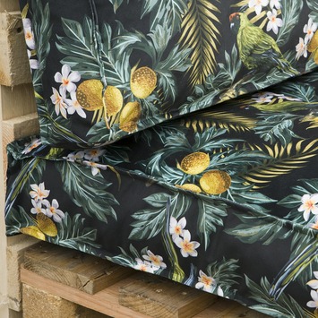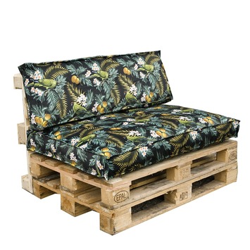Met de palletkussens bird maak je van een pallet heel gemakkelijk een comfortabele zitplaats. De trendy kussens met vogelprint bestaan uit een zit- en een ruggedeelte. Het buitenmateriaal bestaat uit 100% polyester en het binnenkussen is gemaakt van 100% katoen.