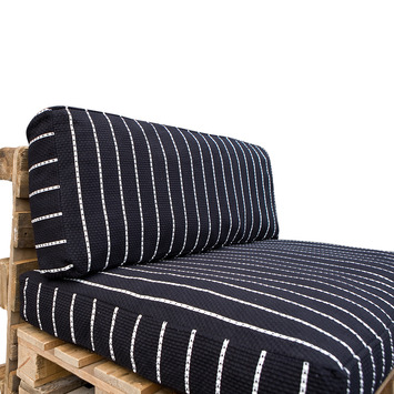 Met de palletkussens Daan maak je van een pallet heel gemakkelijk een comfortabele zitplaats. De kussens bestaan uit een zit- en een ruggedeelte. De geweven stof laat een mooi krijtstreep patroon zien dat zorgt voor een grove, stoere uitstraling. Het buitenmateriaal bestaat uit 100% katoen en de vulling is gemaakt van 100% blended foam. Hierin is een deel memory foam verwerkt zodat het kussen altijd mooi terug in model komt. Het palletkussen wordt exclusief onderstel geleverd.