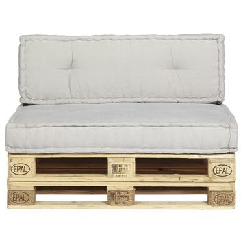 Met de palletkussens Jill maak je van een pallet heel gemakkelijk een comfortabele zitplaats. De zilvergrijze gewassen canvas kussens bestaan uit een zit- en een ruggedeelte. Zowel het binnen- als het buitenmateriaal bestaat uit 100% katoen.