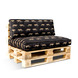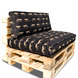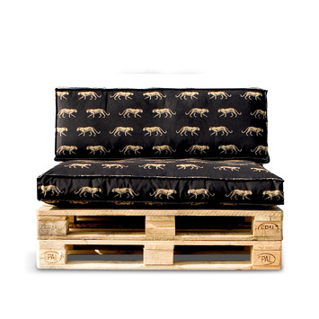 Met de palletkussens Luipaard maak je van een pallet heel gemakkelijk een comfortabele zitplaats. De zwarte fluweelachtige kussens bestaan uit een zit- en een ruggedeelte. Daarop is een herhalend patroon van een luipaard op geprint. Het buitenmateriaal bestaat uit 100% polyester en de vulling is gemaakt van 100% blended foam. Hierin is een deel memory foam verwerkt zodat het kussen altijd mooi terug in model komt. Het palletkussen wordt exclusief onderstel geleverd.