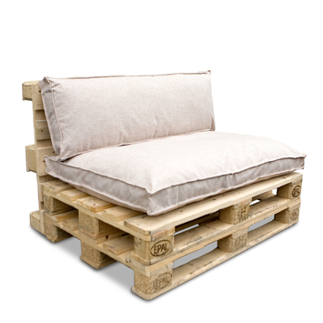 Met de palletkussens Urban maak je van een pallet heel gemakkelijk een comfortabele zitplaats. De beige stoere kussens bestaan uit een zit- en een ruggedeelte. Het buitenmateriaal bestaat uit 100% polyester en het binnenkussen is gemaakt van 100% polyester. Wordt exclusief onderstel geleverd.