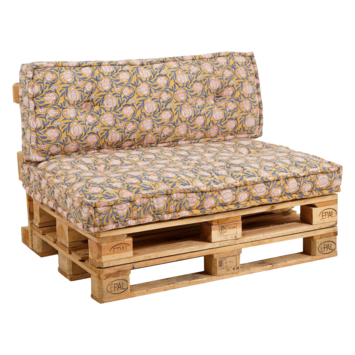 Met deze palletkussen set maak je jouw zitplek buiten comfortabeler. De set bestaat uit twee kussens: een zitkussen van 120 x 80 cm en een rugkussen van 120 x 40 cm. Je gebruikt ze eenvoudig op een palletbank in de tuin, op het balkon of terras. De kussens hebben een katoenen hoes met een okergele bloemprint die vrolijk oogt in de buitenlucht. De hoezen kun je wassen in de wasmachine en drogen in de droger, zo blijven ze schoon en fris. Het katoen voelt prettig aan en zorgt voor een ademend oppervlak. De set combineert comfort met makkelijk onderhoud, zodat je langer kunt genieten van jouw zitplek.