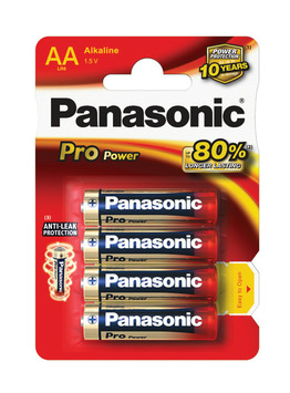 Panasonic Pro Power alkaline batterij, een krachtige 1,5 volt penlite batterij in een eenvoudig te openen blisterverpakking. Verpakking: 4 stuks.