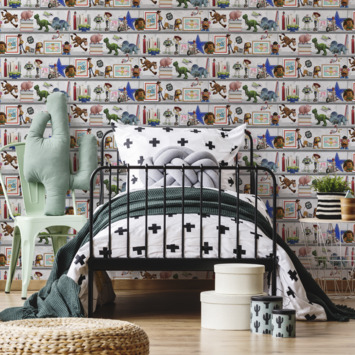 Met het papierbehang Toy Story Play Date (dessin 108017) van Disney wordt de kinderkamer in een handomdraai omgetoverd in een waar kinderparadijs. Papierbehang is gemakkelijk aan te brengen wanneer je de lijm korte tijd laat intrekken vóórdat je het op muur plakt. Een behangtafel maakt dit een stuk gemakkelijker. De rol is 10 meter en is 52 centimeter breed. Kortom, kies voor het papierbehang Toy Story Play Date (dessin 108017) wanneer je op zoek bent naar een Toy Story kinderbehang. Of bekijk ons ruime assortiment behang bij KARWEI en ontdek alle speelse, vrolijke kleuren en grafische afbeeldingen voor jongens en meisjes. Dit behang is alleen online en via de zuil in de bouwmarkt te bestellen.