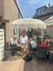 Parasolstok heeft scheven gaten en heel zwaar om uit te klappen en het haakje erop te doen