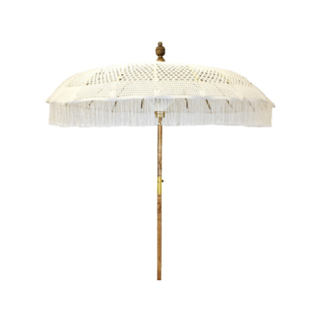 De parasol Bali macramé is de perfecte parasol voor wie op zoek is naar een parasol met een unieke uitstraling. De combinatie van hout en wit geeft deze parasol een bohemian flair. Het uitklapmechanisme is handmatig, waardoor je snel de parasol kunt open- of dichtklappen. De parasol heeft een diameter van 185 cm, wat hem perfect maakt voor kleinere buitenruimtes zoals balkons of kleine terrassen. Gemaakt van plantaardige materialen en stof, voegt deze parasol een natuurlijke touch toe aan je tuin.