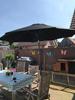 De houder is stevig aan te schroeven (verlengstuk). Parasol heeft een mooie breedte het zwarte doek houdt het zonlicht goed tegen