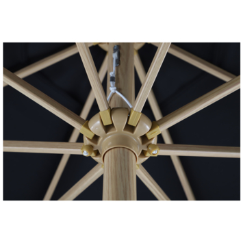 De parasol Lima Zwart is perfect voor wie op zoek is naar veel schaduw en een stijlvolle uitstraling. Met een diameter van 300 cm zorgt deze parasol voor volop beschutting tegen de zon. De zwarte kleur past in vrijwel elke tuin of op elk terras, terwijl de houtlook stok een natuurlijke uitstraling geeft die mooi combineert met de zwarte parasol. Het is de ideale keuze voor een zomerse dag, of je nu buiten zit te eten of gewoon lekker wilt ontspannen in de schaduw.