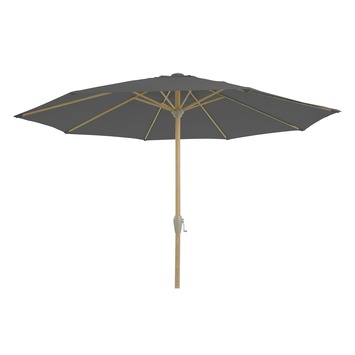 Parasol Lima Zwart Houtlook Ø300 cm is een ronde stokparasol en is zwart van kleur. De parasol biedt een uv-bescherming van factor 30. Zo zit je beschermd tegen de allerfelste zonnestralen toch lekker buiten. De metalen delen van deze parasol heeft een houtlook, maar is gemaakt aluminium. Hierdoor is de paal onderhoudsvrij maar heeft het toch een warme uitstraling. Gespetter, nat worden of een regenbuitje is dus geen probleem, de parasol blijft roestvrij. Parasol Lima is een fijne parasol voor iedereen die vaak of langdurig buiten zit en is gemakkelijk uit de klappen met een hendel. Parasol Lima heeft een diameter van 300 centimeter en wordt geleverd exclusief parasolvoettegels. Deze zijn nodig om de parasol stabiel te houden in de wind. Met een diameter van 300 cm heb je minimaal 40 kg nodig om dit voor elkaar te krijgen.