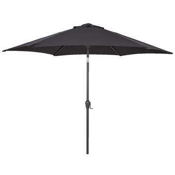 De Parasol Lombok Zwart Ø270 cm is een prachtige zwarte parasol. Dit zwarte decoratiestuk biedt een heerlijk plekje in de schaduw tijdens warme zomerse dagen. De parasol bestaat uit een polyester doek en een metalen stok. Onder deze parasol kun je heerlijk afkoelen met een koud glas drinken in je hand, terwijl de zon de rest van je tuin verhit. Deze parasol heeft een diameter van 270 cm en is zwart van kleur. Het voetstuk is niet inbegrepen, maar hebben wij wel in ons assortiment. Gebruik daarnaast minimaal 40 kg om het voetstuk te verzwaren, zodat je de wind de baas bent. Je kunt de parasol verzwaren met stoeptegels, maar het is mooier om dat met de speciaal hiervoor bedoelde parasolvoettegels te doen.