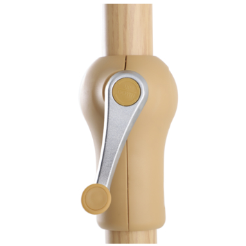 Buiten dat die erg mooi en gezellig eruit is de parasol ook best praktisch. Weinig gewicht maar stevig. Waterbestendig en ook snel droog. Leuk dat de meestal saaie paal mooi houtpatroon heeft