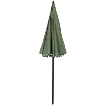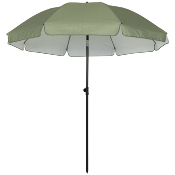De Rimini strandparasol van 200 cm zorgt voor een fijne plek uit de zon. Het groene polyester doek filtert zonlicht en biedt extra bescherming met UV-beschermingsfactor 50, waardoor je prettiger buiten zit.