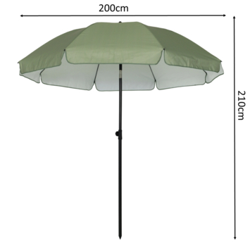 Met een diameter van 200 cm biedt de parasol voldoende schaduw voor een strandstoel of handdoek. Het doek van polyester heeft een dikte van 160 g/m² en helpt om fel zonlicht te verminderen. De hoogte van 200 cm tussen de onderkant van de parasol en de grond geeft voldoende ruimte om er comfortabel onder te zitten.
