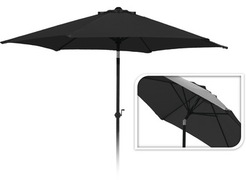 Parasol Sapa zwart d270 cm is een zwarte parasol met een polyester doek en aluminium stok. Halverwege de stok zit een hendel waarmee je de parasol uitklapt. De diameter van de parasol is 270 centimeter. Bij de parasol is de parasolvoet niet meegeleverd. Het is een moderne parasol die functioneel en decoratief een meerwaarde heeft, vanwege het moderne uiterlijk. Parasol Sapa zwart d270 cm is ook verkrijgbaar in de kleuren grijs en wit.